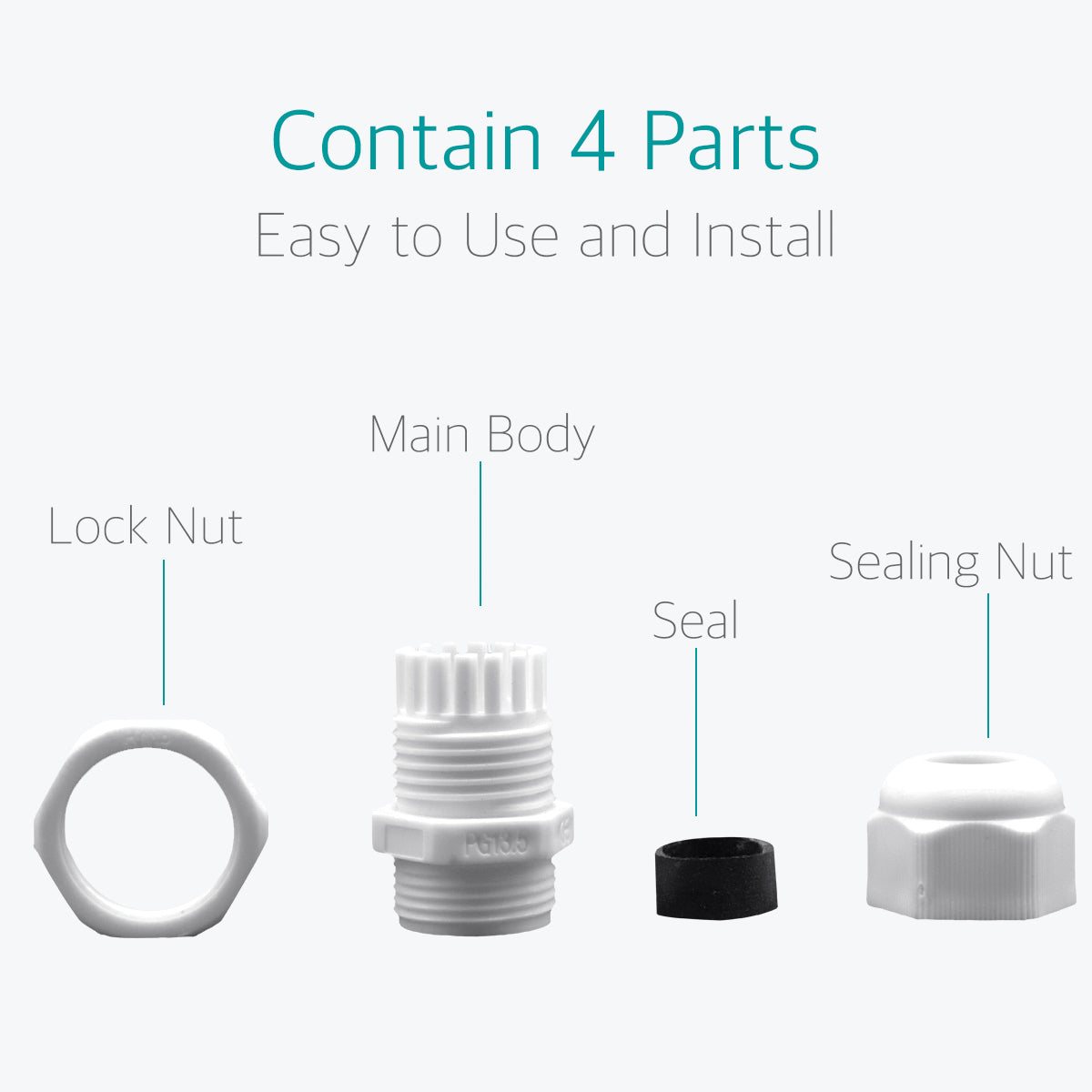 • Make of 4 parts, lock nut, body, seal, sealing nut, easy to use and install.