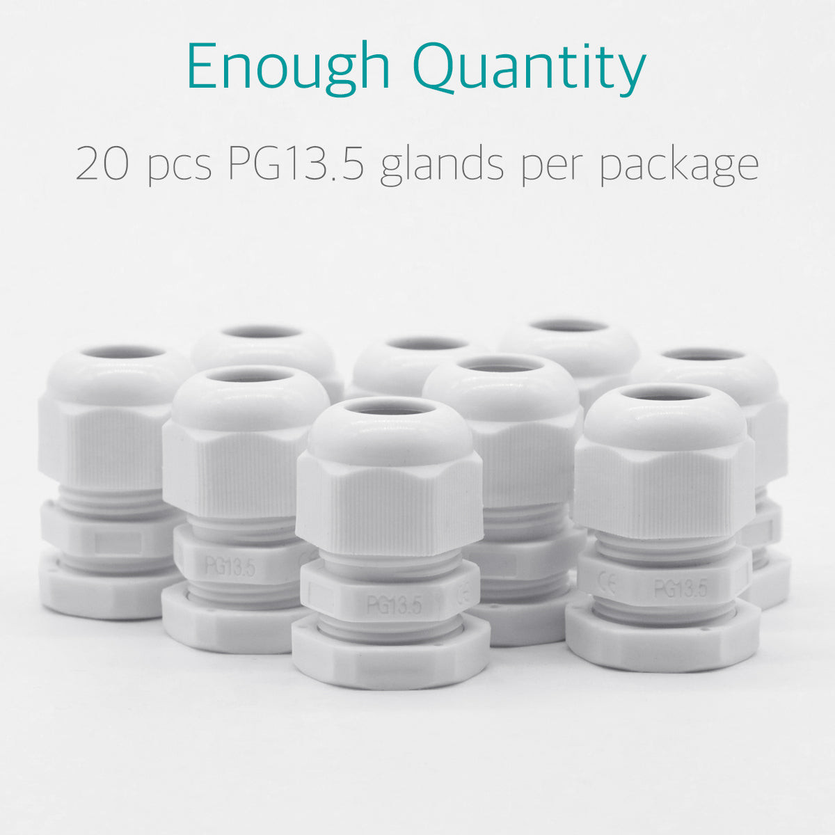 20 Pcs White PG 13.5 Cable Gland Fit for 6mm to 12mm Cable Range