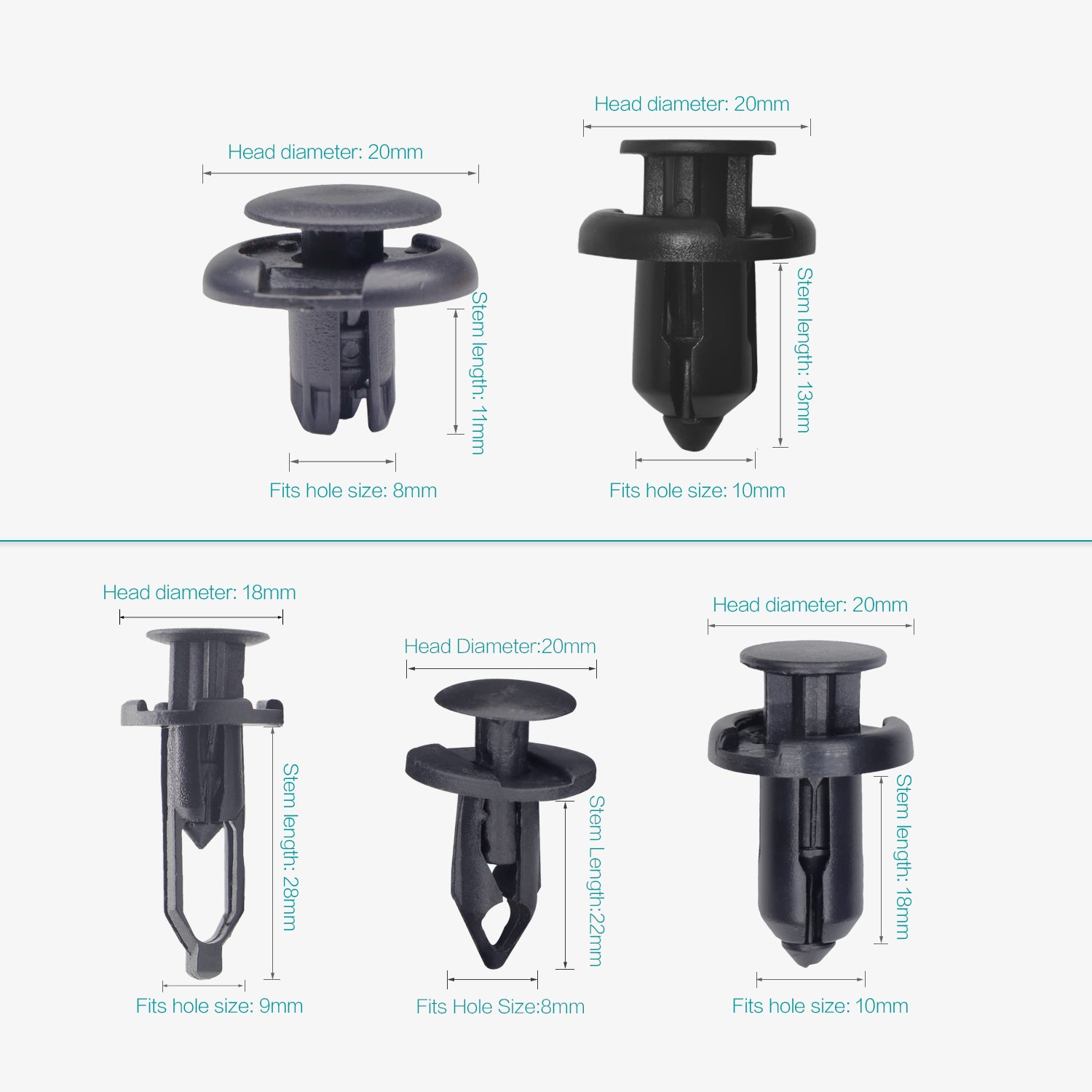 - PACKAGE INCLUDED: 50PCS 8mm 9mm 10mm Bumper Push Rivet Clips