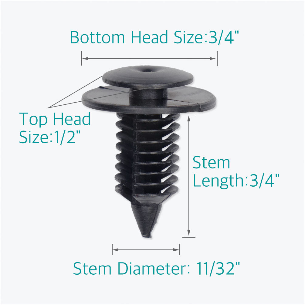 - Dimensions: Bottom Head Diameter: 3/4", Top Head Diameter:1/2", Stem Diameter: 11/32", Stem Length: 3/4"