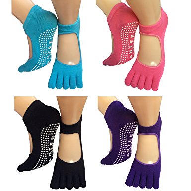 Lantee Open Foot Non Slip Toe Pilates Yoga Socks with Grips for Women, Pack of 4