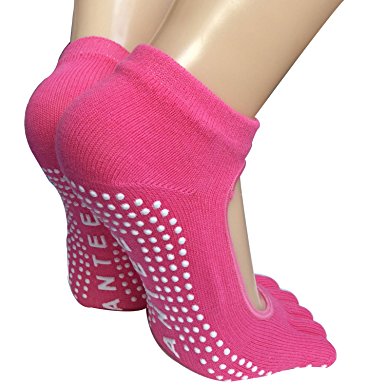 Lantee Non Slip Pilates Yoga Socks Open Foot Full Toe with Grips Cotton for Women, Pack of 4.