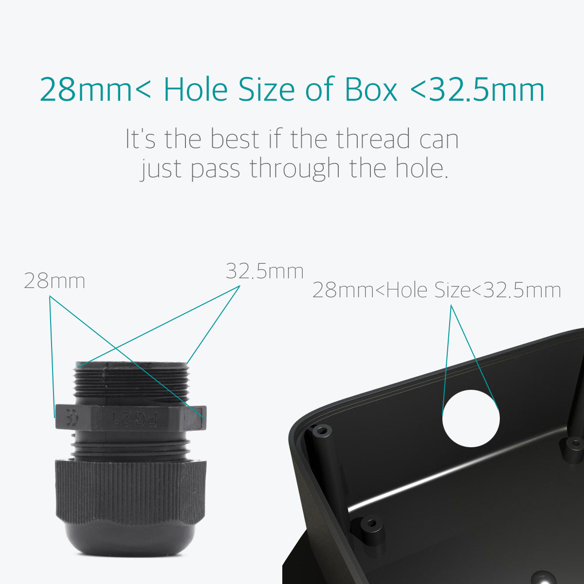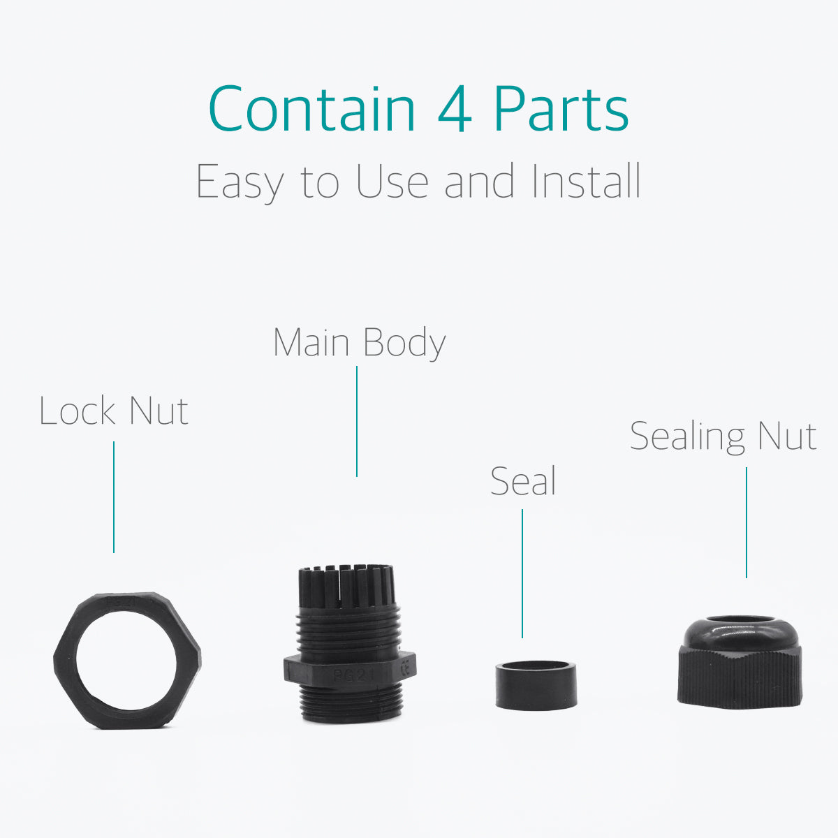 - Lantee PG21 cable gland fit for 13mm to 18mm cable range.