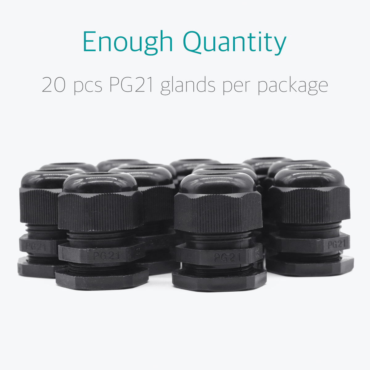 PG 21 Cable Gland - 20 Pcs Waterproof Wire Glands Connector Fitting